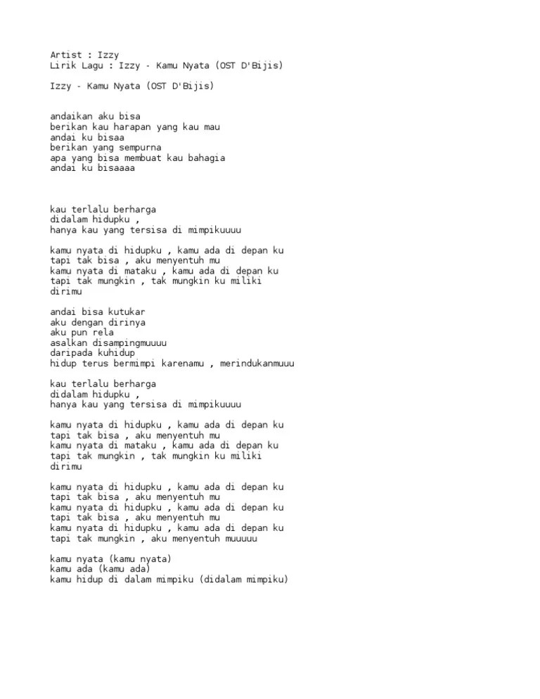 Posting Komentar untuk "Lirik Lagu Hana Kau : Utha Likumahuwa Feat Trie Utami Mungkinkah Terjadi Pdf : Jangan kau sembunyikan dan kau simpan."